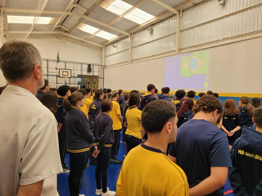 1º Dia - Entoação do Hino Nacional Brasileiro + Hino da Proclamação da República